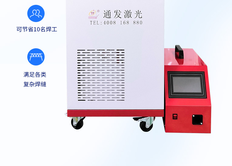 通發(fā)激光一體式手持式激光焊接機(jī),用手持式焊接槍替代以前固定光路,手拿焊接,靈活方便,焊接距離更長,克服工作臺(tái)空間的局限性,工件尺寸不統(tǒng)一時(shí)無法自動(dòng)焊接的情況下使用。主要針對(duì)大型工件、固定位置如內(nèi)直角、外直角、平面焊縫焊接、焊接時(shí)熱影響區(qū)域小,變形小、而且焊接深度大,焊接牢固。是遠(yuǎn)距離焊接大工件的較為靈活的全新的焊接工藝。